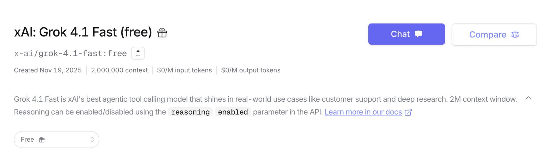 Some are literally free, like Grok 4.1 Fast (as of Nov’ 23).